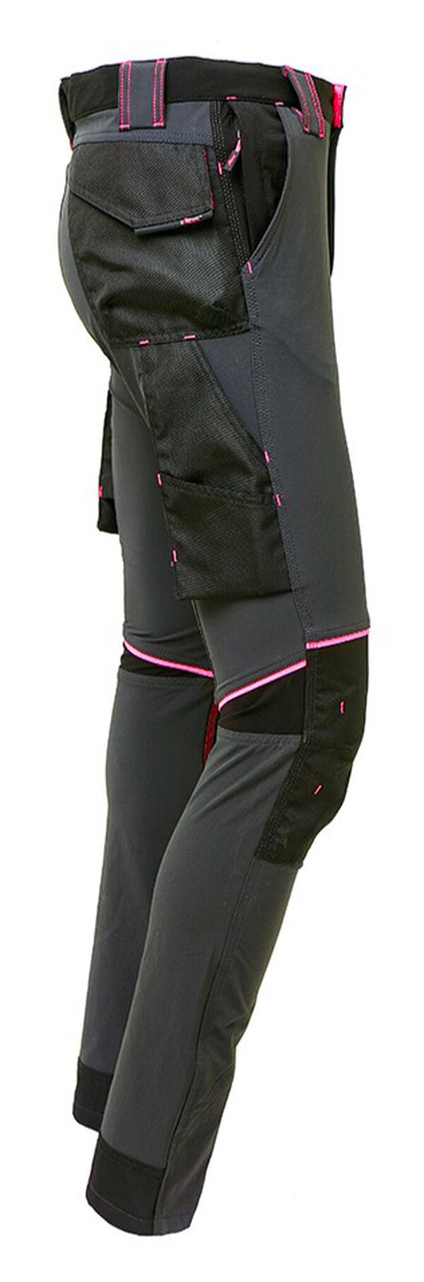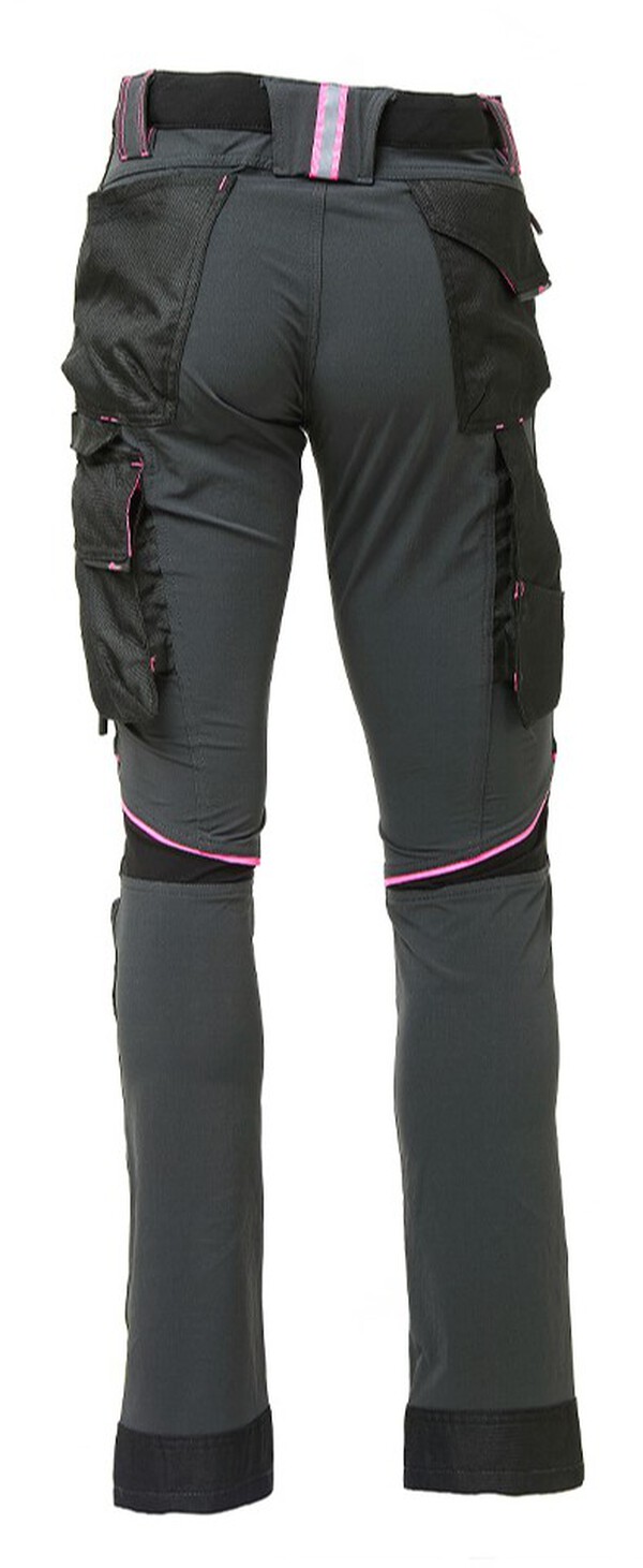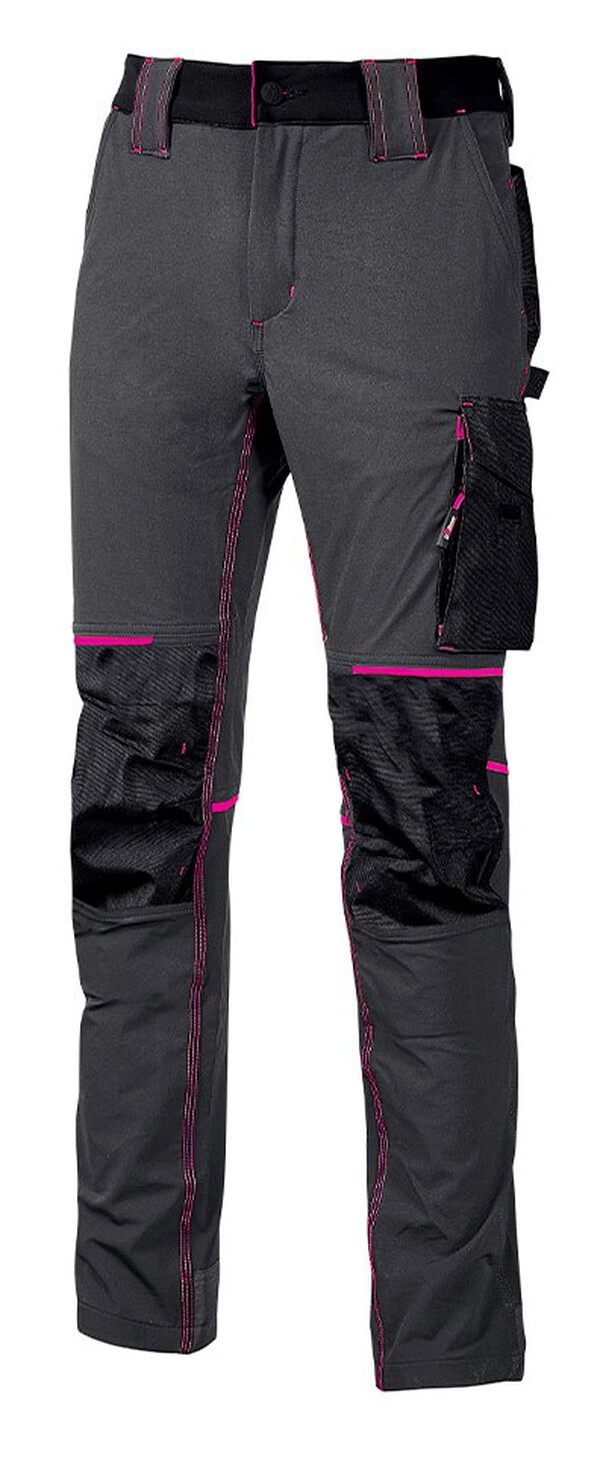 Vodoodbojne delovne hlače iz U-Power 4 way stretch tkanine, ki sledi gibom telesa in daje izjemno udobje. Zahvaljujoč tej lastnosti je tkanina zelo vzdržljiva in odporna. Udobne delovne hlače z visoko zračnostjo in hitrim sušenjem. Zaradi številnih žepov so te hlače funkcionalne in praktične: dva velika sprednja žepa, en stranski žep za orodje, dva žepa z zadrgo, stranski večnamenski žep z izvlečnim držalom za značko, dva zadnja žepa, eden z zadrgo in eden z varnostnim zapiranjem na ježka, ter dva kolenska. Vsi žepi so izdelani iz trpežnega 600D Poly Oxforda in raztegljivega pasu z inovativnim izvlečnim sistemom prilagajanja, izboljšanim zadnjim jarmom za večjo zaščito spodnjega dela hrbta in odsevnimi trakovi na zadnji zanki za pas.